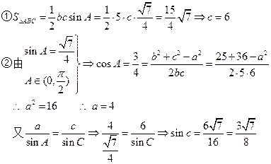 (12分)在锐角△ABC中,角A、B、C的对边长分别为a,b,c,已知b=5,