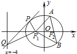 ∴${k_{P{F_1}}}•{k_{Q{F_1}}}=-1$.