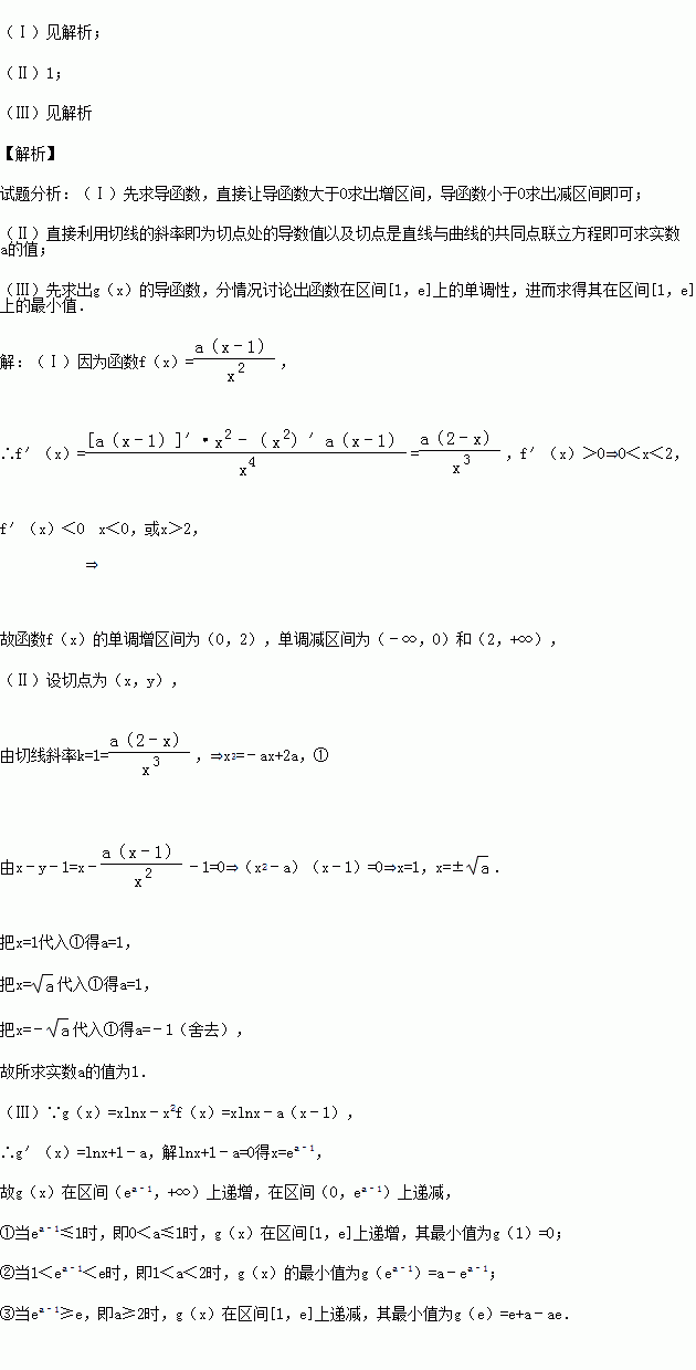 (Ⅲ)设g(x)=xlnx﹣x2f(x),求g(x)在区间[1,e]上的最小值.(其中e为自然对数的底数)
