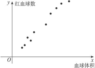 其中x为(血球体积,mm),y为(血红球数,百万)