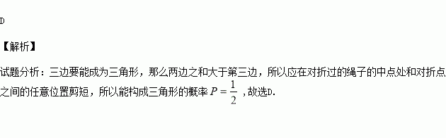 将一根绳子对折,然后用剪刀在对折过的绳子上任意一处剪断,则得到的三条绳子的长度可以作为三角形的三边形的概率为( )
