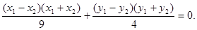 因为A、B关于点M对称,所以x1+ x2=-4, y1+ y2=2,