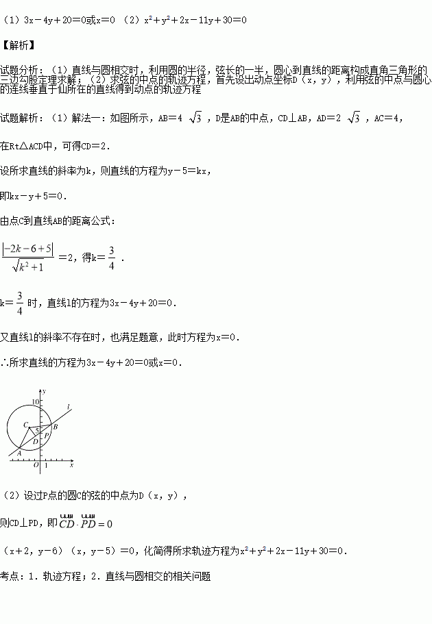 (1)若直线过且被圆C截得的线段长为4,求的方程;