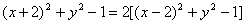 | 解:以O1O2的中点O为原点,O1O2所在直线为x轴, 线段O1O2的垂直平分线为y轴, 建立如图所示的平面直角坐标系, 则O1(-2,0),O2(2,0), 由已知PM= 因为两圆的半径均为1, 所以PO12-1=2(PO22-1), 设P(x,y), 则 即 所以所求轨迹方程为 |