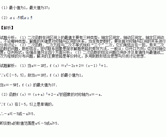 (2)求实数a的取值范围,使y=f(x)在区间[-5,5]上是单调函数
