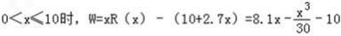 当x>10时,W=xR(x)﹣(10+2.7x)=98﹣