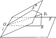 设OP1为∠AOB的平分线,则∠P1OA=∠P1OB=25°,与平面α,β所成的角都是25°,此时过P且与OP1平行的直线符合要求,有一条.当OP1以O为轴心,在二面角α-l-β的平分面上转动时,OP1与两平面夹角变小,不再会出现25°情形.