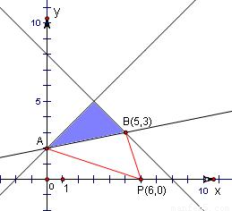 【答案】分析:本题属于线性规划中的延伸题,对于可行域不要求线性目标函数的最值,而是求可行域内的点与点P(6,0)构成的直线的斜率范围.