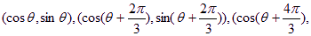 上正三角形的三个顶点.其中心位于原点,显然有