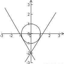 解:由题意可得:集合A为单位圆上的点,集合B表示恒过点(0,-2)的直线一侧的区域,