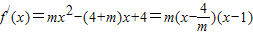 ,∴f′(x)=mx2-(4+m)x+4=(mx-4)(x-1)