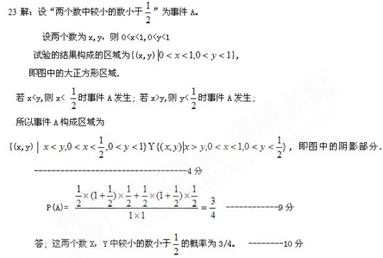 (10分)在区间(0,1)中随机地取两个数X,Y,求这两个数X,Y中较小的数小于