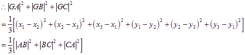 求证:三角形的重心到三角形的三个顶点的距离的平方和等于三边平方和的三分之一。