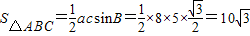 【答案】分析:△ABC中,由内角A,B,C成等差数列,边长a=8,c=5,利用余弦定理能求出第三边b,再由正弦定理能求出△ABC的面积.