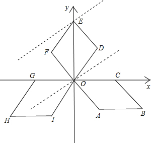 分析 由条件可以看出G,O,C三点共线,并且OE的连线垂直于GC,从而可以分别以OC,OE两直线为x,y轴,建立平面直角坐标系,可以确定D,H的坐标:D($1,\sqrt{3}$),H($-3,-\sqrt{3}$),可设P(X,Y).从而可根据条件$\overrightarrow{OP}=x\overrightarrow{OD}+y\overrightarrow{OH}$,用X,Y表示出x,y,并且可以得到x+y=$-X+\frac{2\sqrt{3}}{3}Y$,可设x+y=z,从而可以得到$Y=\frac{\sqrt{3}}{2}X+\frac{\sqrt{3}}{2}z$,该方程表示的直线的截距为$\frac{\sqrt{3}}{2}z$,可以看出截距最大时,z最大,并且根据图形可以看出当直线过E点时截距最大,这样求出点E的坐标带入直线方程即可求出z,即求出x+y的最大值.