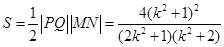 轴的情况两种.前者好求.后者通过假设一条直线联立椭圆方程写出弦长的式子,类似地写出另一条所得到的弦长.通过利用基本不等式即可求得面积的范围.从而再结合垂直于