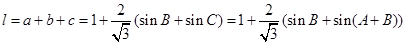 .又有B的范围求出周长的范围.本题主要是解三角形的知识,结合三角函数的知识求最值的问题.属于常规题型.