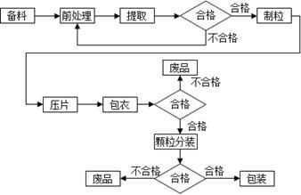 (3)包衣、颗粒分装两环节经检验,合格,进入下一个工序,否则为废品.