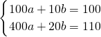若等差数列{an}中,S10=100,S20=110,则S40的值为: