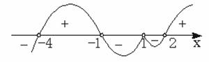 把因式x-1、x+1、x-2、x+4的根画在数轴上,如图,由图知原不等式的解集是{x|x<-4或-1<x<1或1<x<2}.