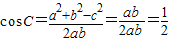 整理得a2+b2-c2-ab=0.即a2+b2-c2=ab,