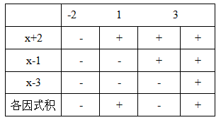 ②求得相应方程的根为:-2,1,3;