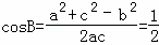 方法二:利用余弦定理把角化边,化简后代入余弦定理的推论,求出B的余弦值,再求出B的值;