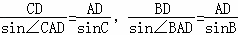 (Ⅱ)由正弦定理在△ACD,△ABD中分别列出两个方程,再由(1)和条件,用内角和定理求出∠ABC,再把条件代入方程化简,由内角的范围求出角C的值,分情况判断三角形的形状求出对应的c.