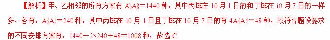 某单位安排7位员工在10月1日至7日值班,每天安排1人,每人值班1天.若7位员工中的甲、乙排在相邻两天,丙不排在10月1日,丁不排在10月7日,则不同的安排方案共有( )
