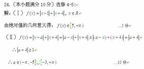 (4)选修4-5:不等式选讲(本小题满分10分)