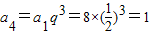 ,a1=8,由此利用等比数列的通项公式和前n项和公式能求出其第4项及前5项和.
