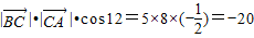 在△ABC中,a=5,b=8,C=60°,则A.10