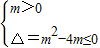 解得0<m≤4