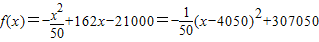 所以,当x=4050时,f(x)最大,最大值为f(4050)=307050,