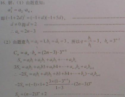 (2)若Cn=an·bn,求数列{Cn}的前n项和Sn。