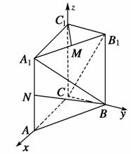 如图所示,直三棱柱ABC-A1B1C1,在底面△ABC中,CA=CB=1,∠BCA=90°,棱AA1=2,M、N分别是A1B1、A1A的中点.