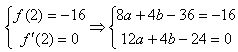 (Ⅱ)若函数在x=2处取得极值-16,试求函数解析式并确定函数的单调区间。