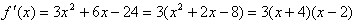 ;单调减区间为(-4,2)。