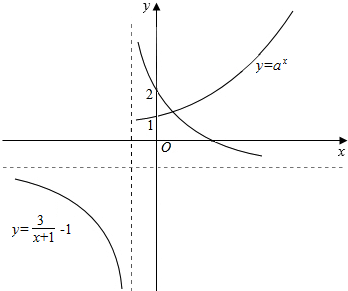由图象可看出y=ax与y=$\frac{3}{x+1}$-1