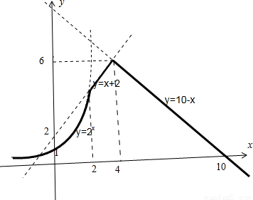 f(x)=min{2x,x+2,10-x}(x≥0)如图所示,
