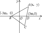 (3)设BD为AC边上的中线,根据等底同高得到三角形ABD的面积与三角形BCD的面积相等,都等于三角形ABC面积的一半,然后以BD所在的直线为x轴,线段BD的垂直平分线为y轴建立平面直角坐标系,可得出B和D的坐标,设出A的坐标为(x,y),根据AB等于2AD列出关系式,整理后得到A的轨迹方程,进而确定出y的最大值即为三角形ABD中BD边上的高的最大值,由底BD为6m,利用三角形的面积公式求出三角形ABD面积的最大值,即可得到三角形ABC面积的最大值.