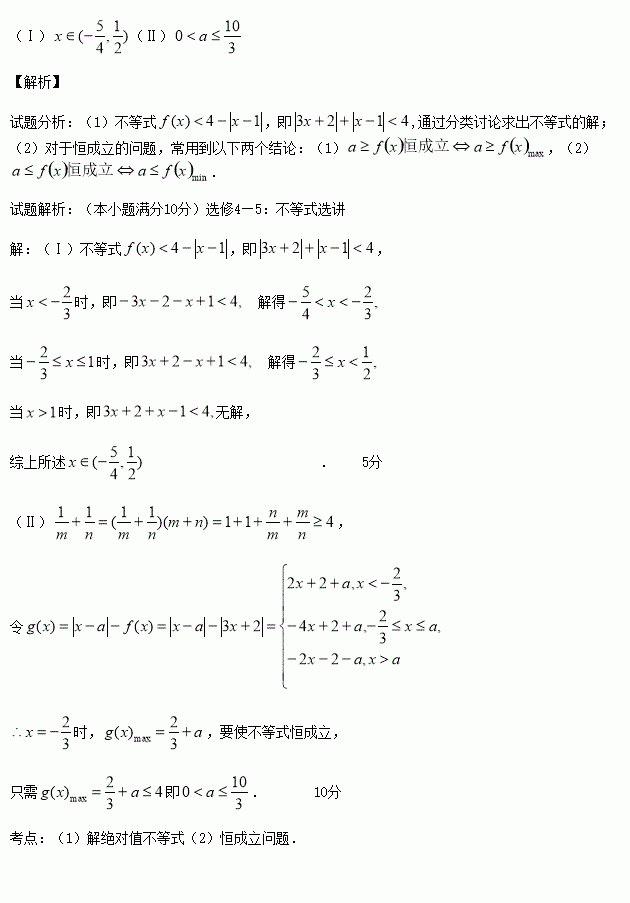 (Ⅱ)已知m+n=1(m,n>0),若恒成立,求实数a的取