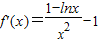 ∵当0<x<1时,f′(x)>0;当x>1时,f′(x)<0