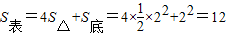 解:三视图复原几何体是底面是边长为2的正方形,斜高为2的四棱锥,