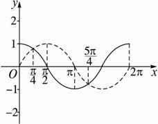 解法一:作出在(0,2π)区间上正弦和余弦函数的图象,解出两交点的横坐标为