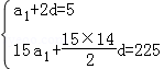 已知等差数列{an}的前n项和为Sn,且a3=5,S15=225.
