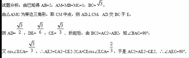 在△ABC 中,∠C =90°,∠B =30°,AC=1,M 为 AB 中点,将△ACM 沿 CM 折起,使 A、