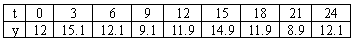 设y=f(t)是某港口水的深度y(米)关于时间t(时)的函数,其中0≤t≤24。下表是该港口某一天从0时至24时记录的时间t与水深y的关系: