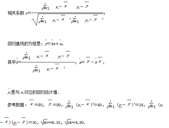 (2)根据上表数据,用变量y与x的相关系数和散点图说明物理成绩y与数学成绩x之间线性相关关系的强弱.如果具有较强的线性相关关系,求y与x的线性回归方程(系数精确到0.01);如果不具有线性相关关系,请说明理由.