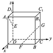 如图,长方体ABCD—A1B1C1D1中,AA1=AB=2,AD=1,点E、F、G分别是DD1、AB、CC1的中点,则异面直线A1E与GF所成的角是( )
